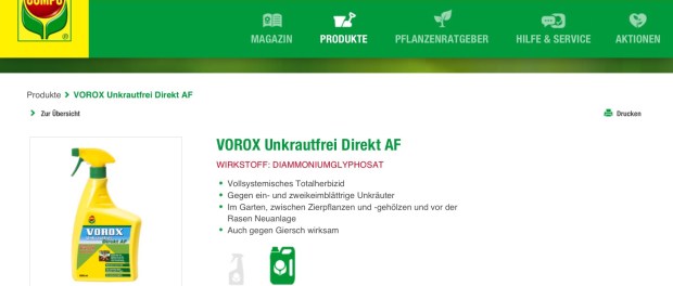 In Österreich sind diese glyphosathaltigen Produkte für den Haus- und Gartenbereich zugelassen: